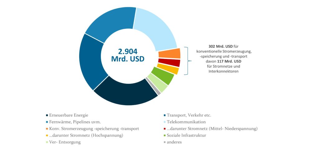 Abb. 3: Transaktionsvolumen in europäische Infrastruktur nach Sektoren (letzten fünf Jahre), inkl. auch Debt Financing und M&A Aktivitäten; Quelle: Infralogic, September 2025.